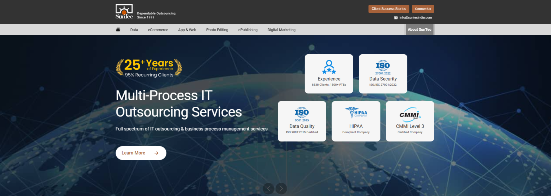 SunTec India is an AI-enabled IT and digital services company with 25+ years of experience, 1,500+ full-time employees, 8500+ clients worldwide, and a full spectrum of IT outsourcing, data solutions, digital engineering, eCommerce support, and photo editing servicesβenhanced with AI & data capabilities and combined with deep human expertise.