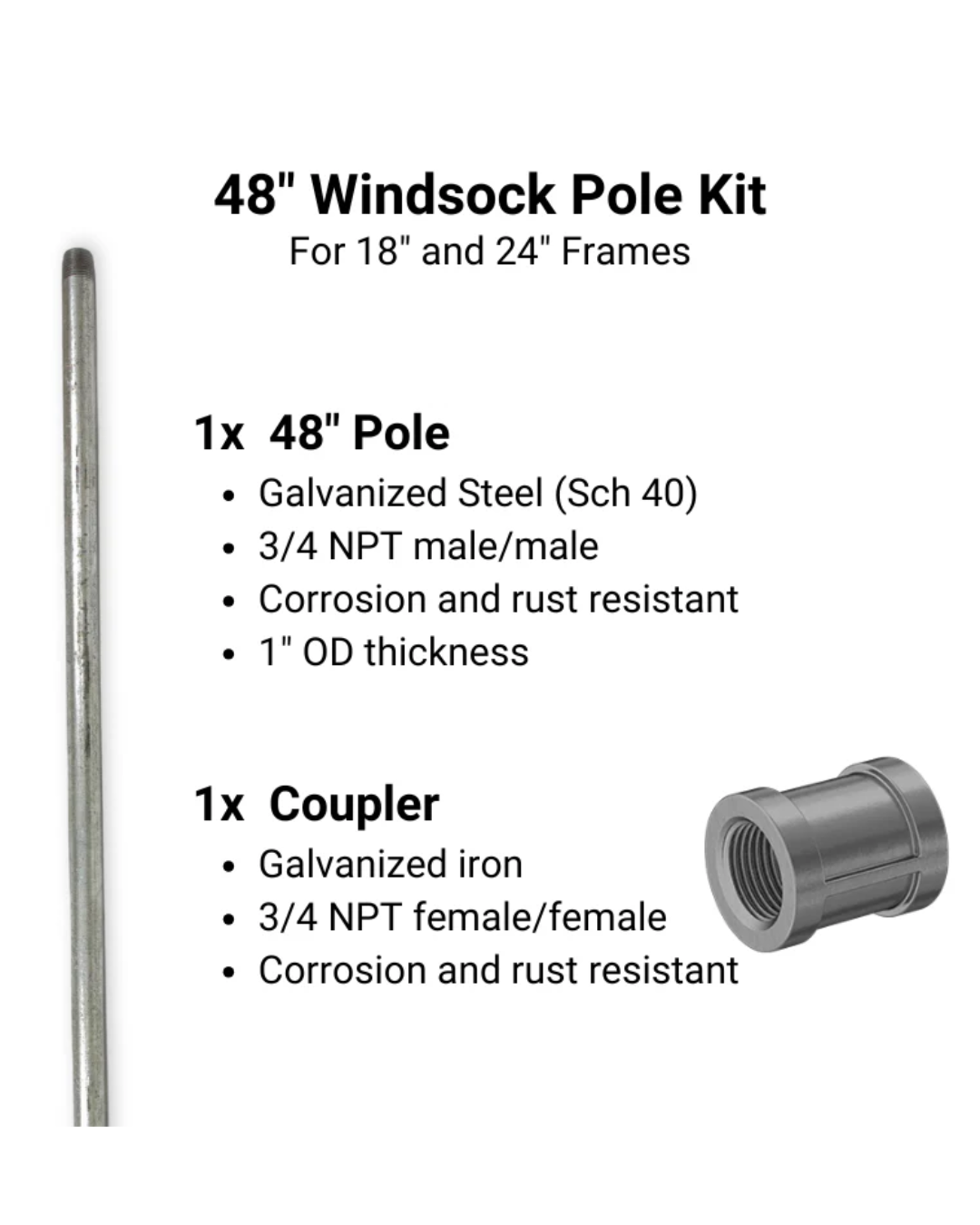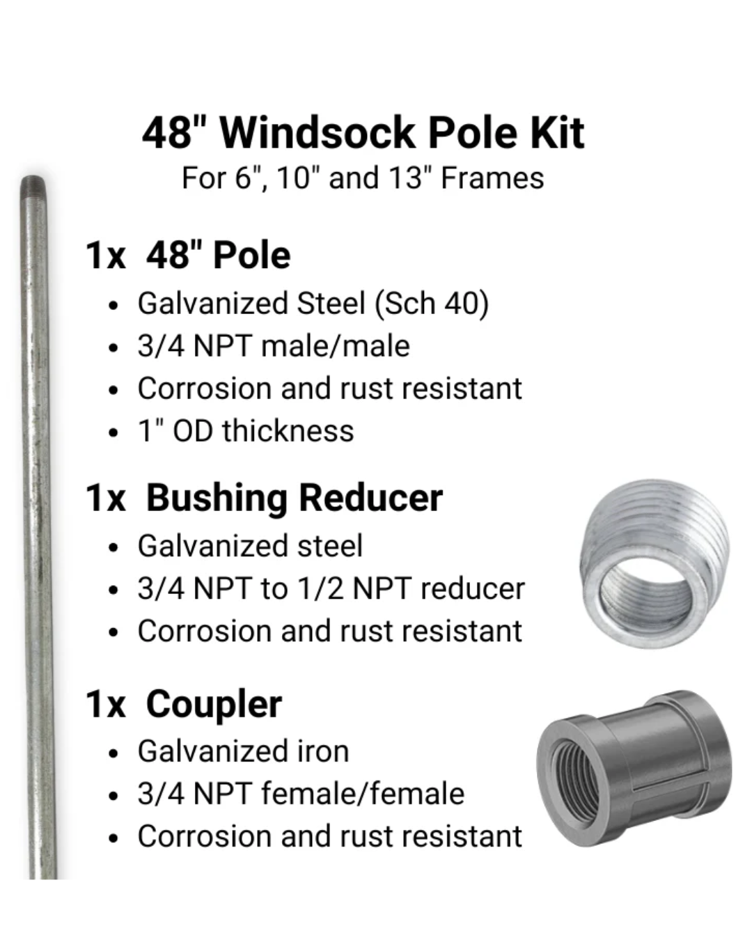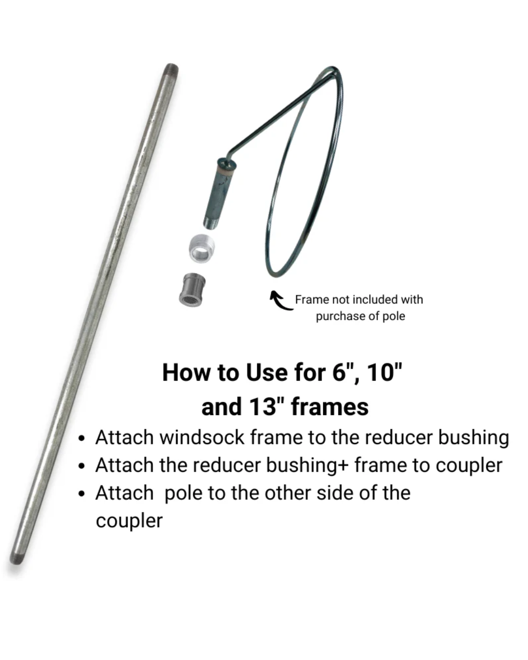 This pole can be use in conjunction with our Windsock Pole to Pole Adapter as well as our Windsock Wall Mount to or Windsock Tripod Mount.